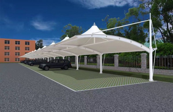 膜結構停車棚因其自重輕,具有良好的受力特點,所以成為大跨度空間結構的主要形式之一。停車場的規劃和建設成為現代城市規劃的重要組成部分,在以后的建設里會變得越來越重要。膜結構輕巧、別致的造型在停車場及候車廳的建設中擔當了重要角色,除了滿足防風雨、防日曬等基本功能外,并有較好的標識招攬效果,展現了人們個性化的一面。